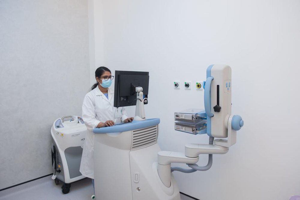 The Interventional Radiology unit comprises a team of 4 consultants, one specialist, and three interns. Four catheter laboratories, located at Hamad General Hospital, Ambulatory Care Center, National Center for Cancer Care and Research. Each of these laboratories is equipped with an imaging unit and a CT system for biopsies and sampling.