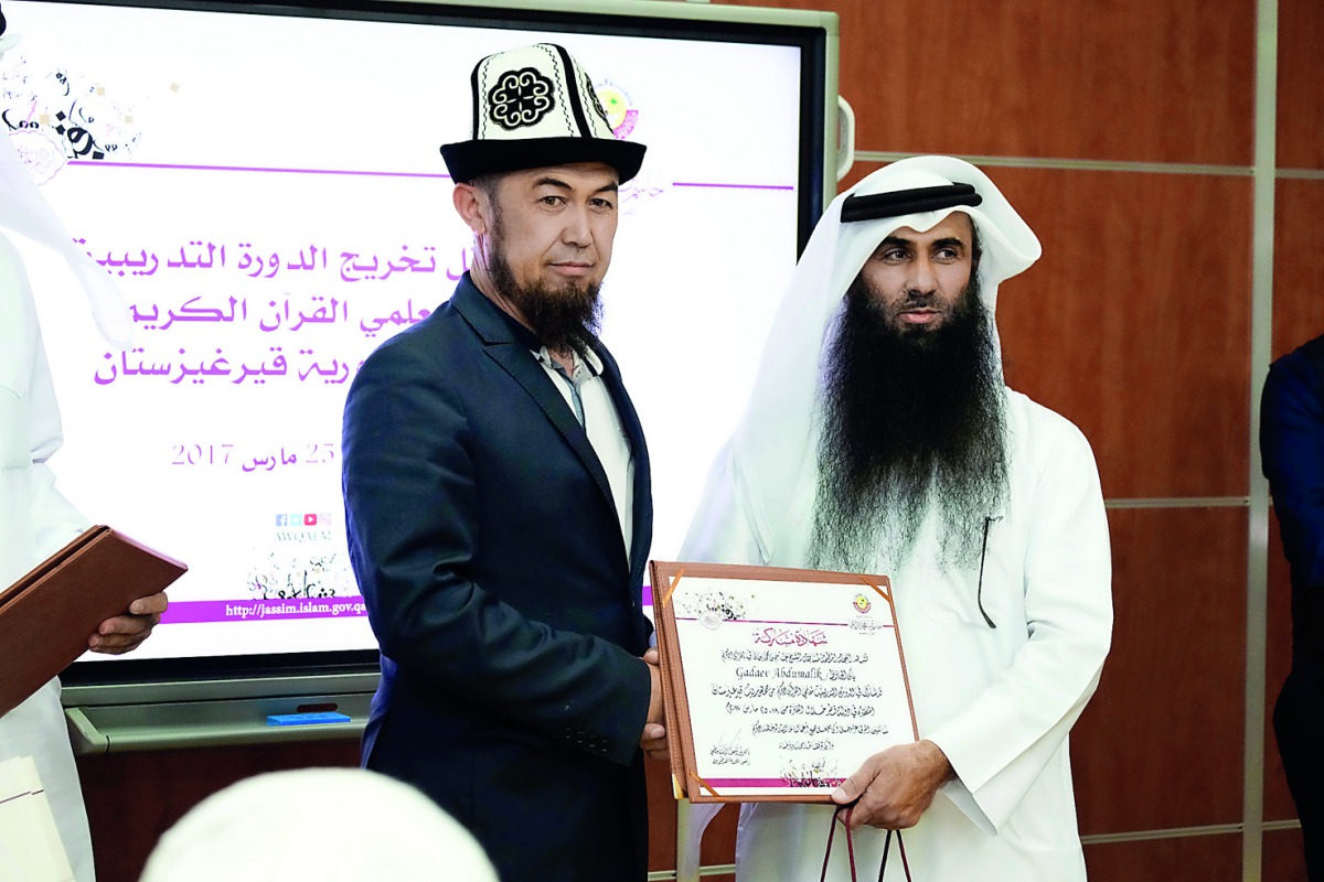 The graduation ceremony was attended by Kyrgyz Ambassador to Qatar Nuran Niyazaliev, Sheikh Hamad bin Abdullah Al Mehinna Al Marrai, Deputy Chairman of the the Organizing Committee of Sheikh Jassim bin Mohamed bin Thani Holy Quran Contest and other officials of the Ministry.
