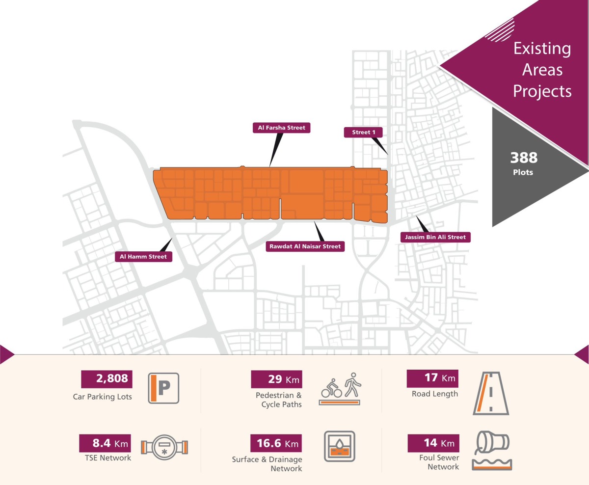 Eng. Fahad Mohammed Al-Otaibi, Head of Western Areas Section of the Roads Projects Department at Ashghal, explained that it is implementing a plan consisting of two packages to upgrade Al-Wajba East, of which the first package is completed and serves about 388 land plots within citizens subdivisions, and the second package will serve 417 land plots once completed. The two packages will provide all road network, drainage network, and rainwater drainage services and other important services to the area residents.