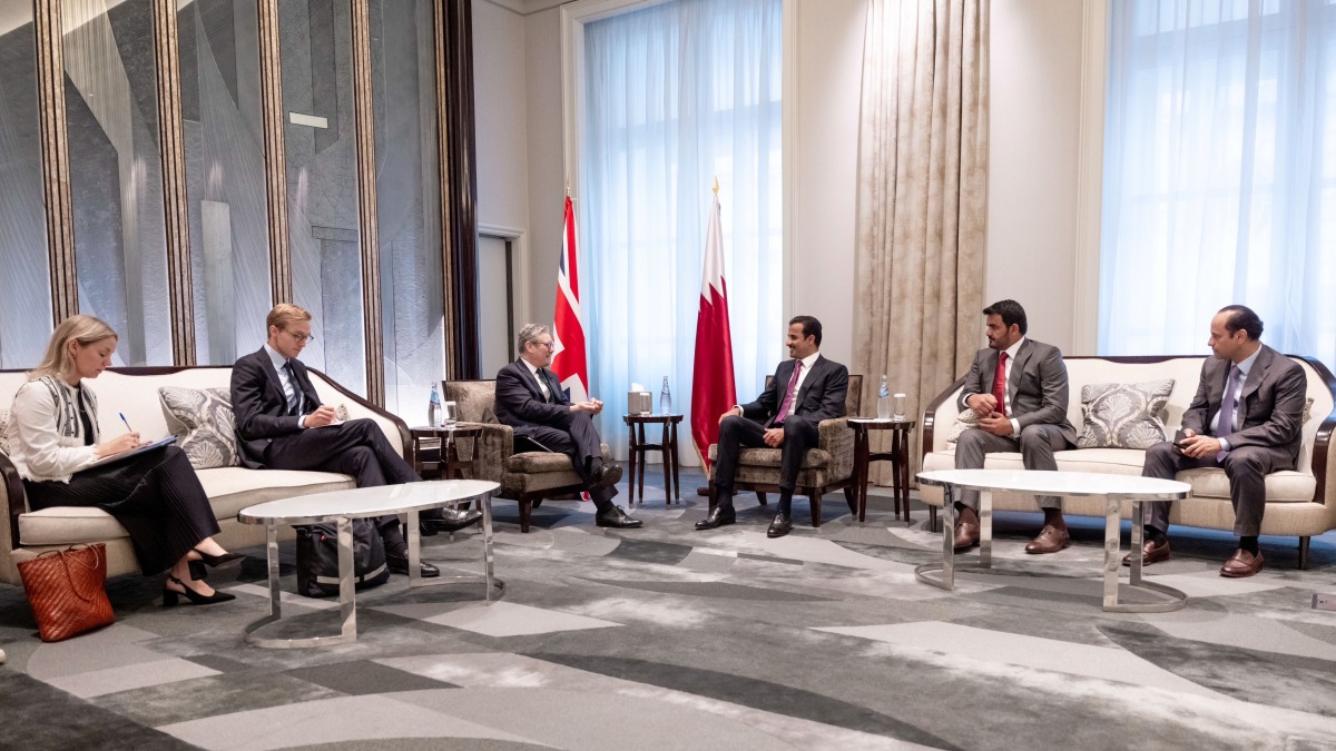 Doha, Qatar: The Amir His Highness Sheikh Tamim bin Hamad Al Thani met with His Excellency Keir Starmer, Prime Minister of the United Kingdom, at the Amir's residence in Paris on Saturday, July 27, 2024.