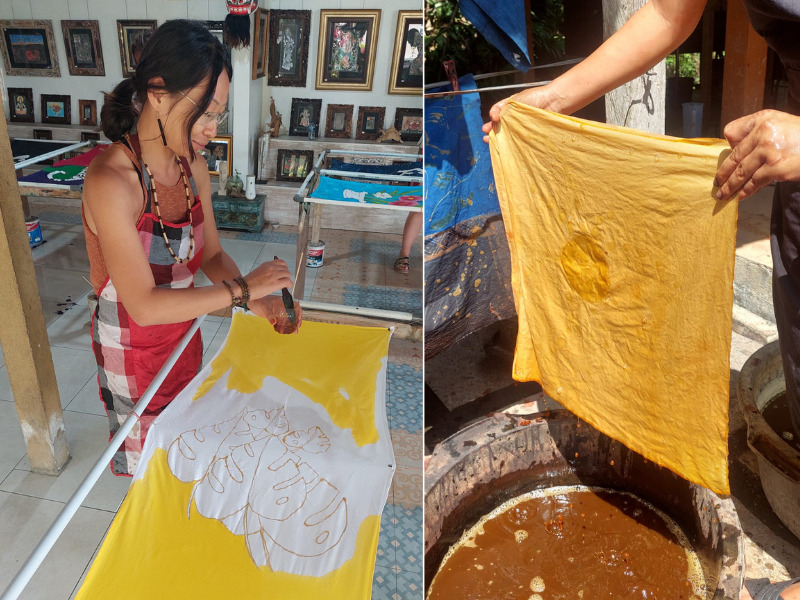 Michelle Wu during batik hand painting and natural dyeing of textile in Bali, Indonesia.