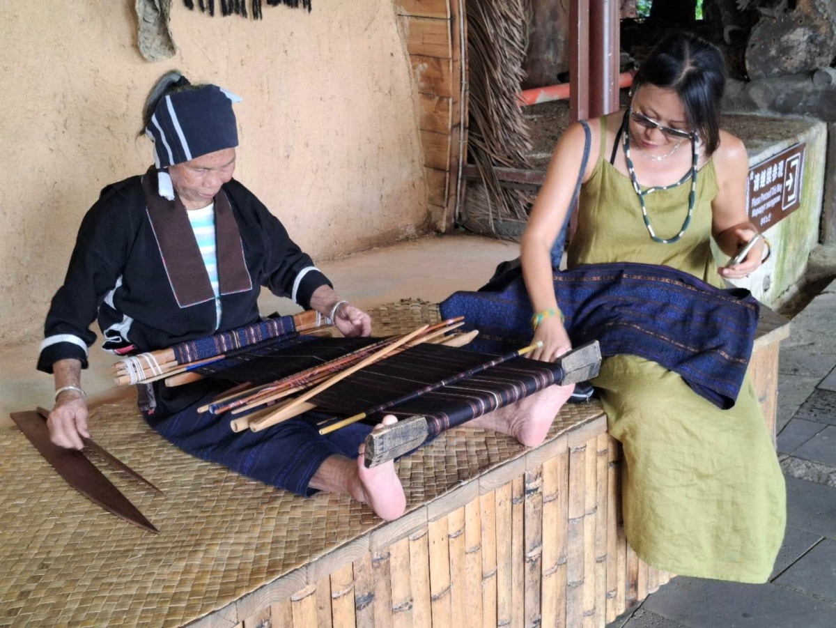 Michelle Wu at a backstrap weaving place in South China.