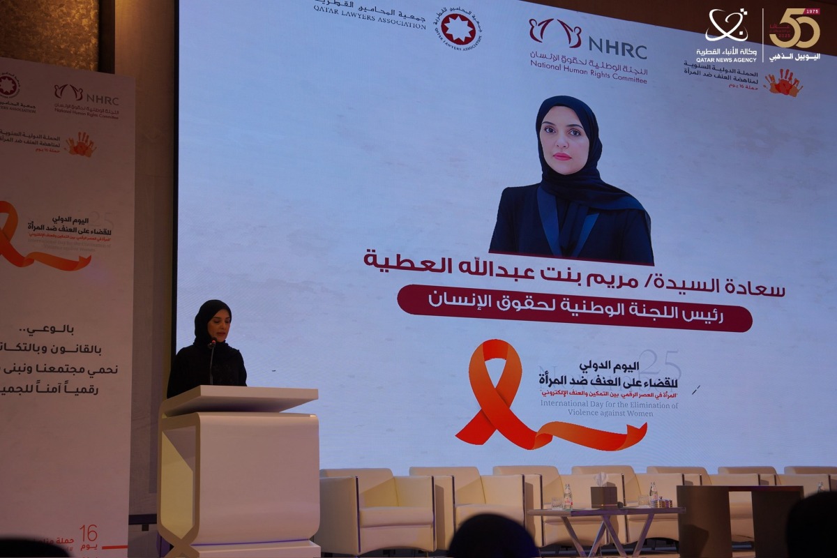 Doha, Qatar: The National Human Rights Committee (NHRC), in cooperation with Qatar Lawyers Association, organized a panel discussion on women in the digital age: between empowerment and cyber violence, within the framework of the International Day for the Elimination of Violence against Women, and as part of the "16 Days of Activism against Gender-Based Violence" campaign launched by the Ministry of Social Development and Family.