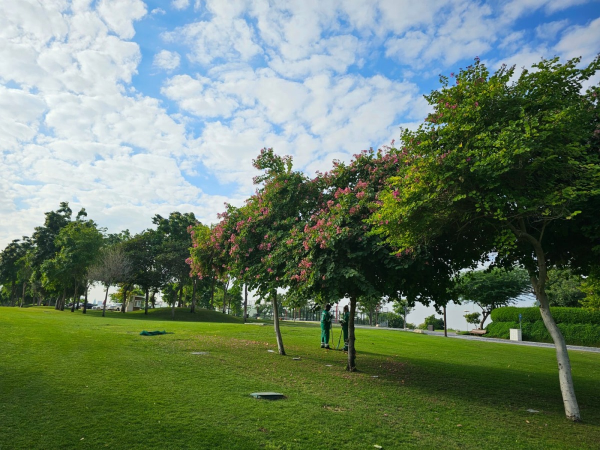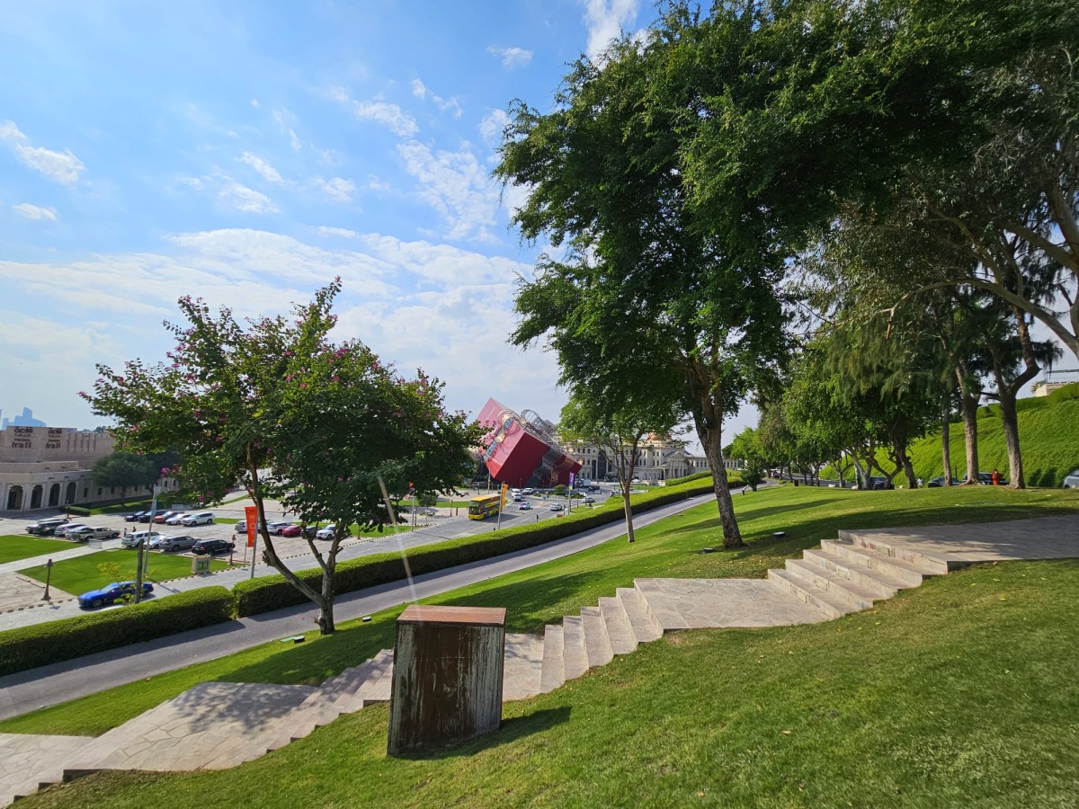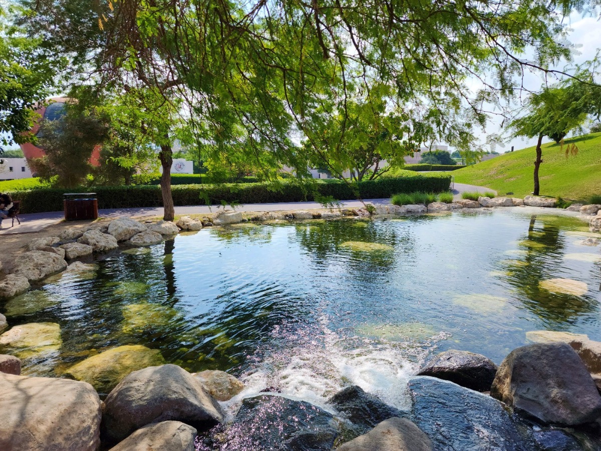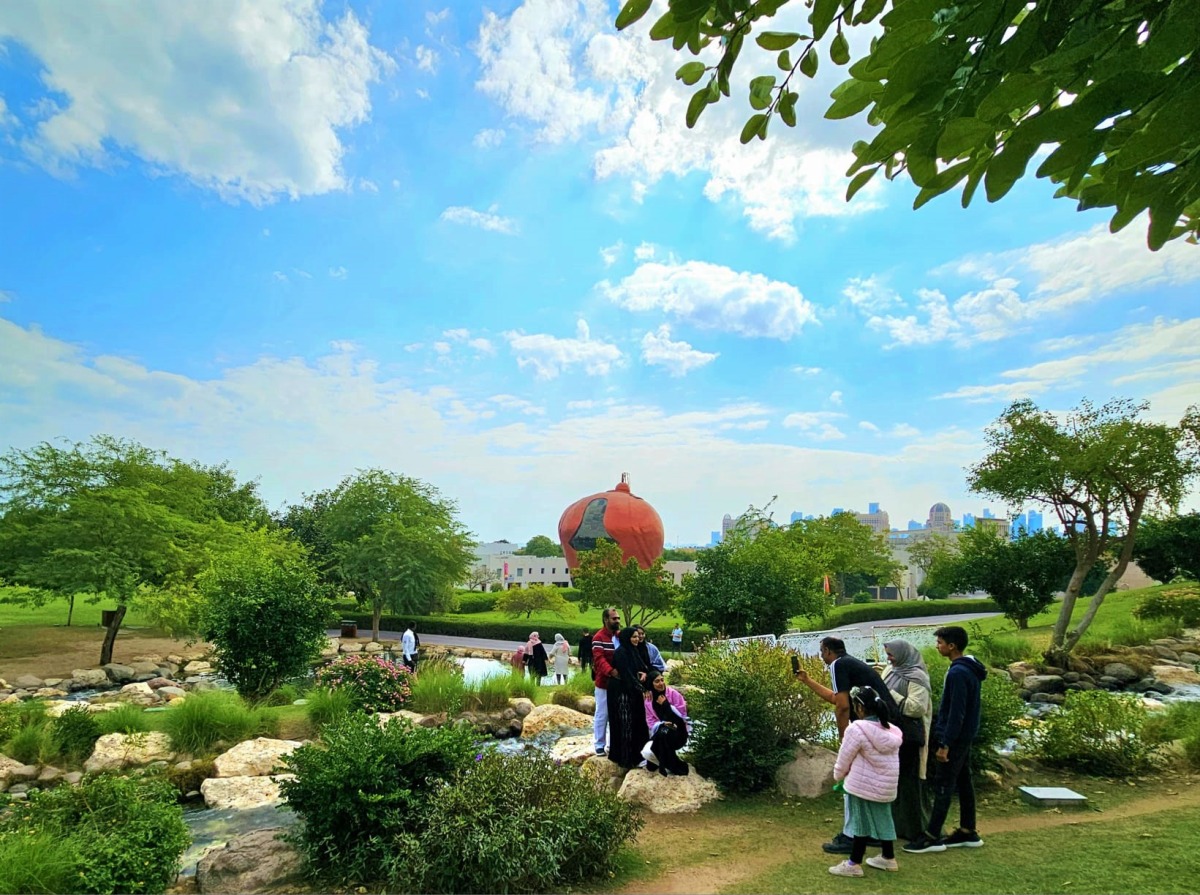 The elevated lush greenery with well-kept grass and many trees is an ideal place for bonding with friends and family. It also has jogging trails and a 'river', which is rare in Qatar that many people were enticed to come and see.