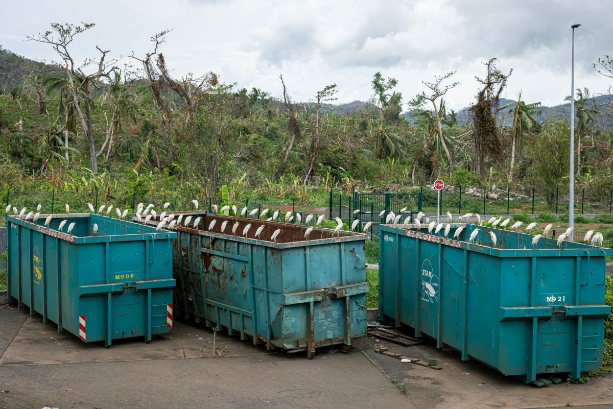 This photograph shows birds standing on top of containers at a waste disposal site in the city of Malamani, on the French Indian Ocean territory of Mayotte on December 26, 2024. Photo by PATRICK MEINHARDT / AFP
