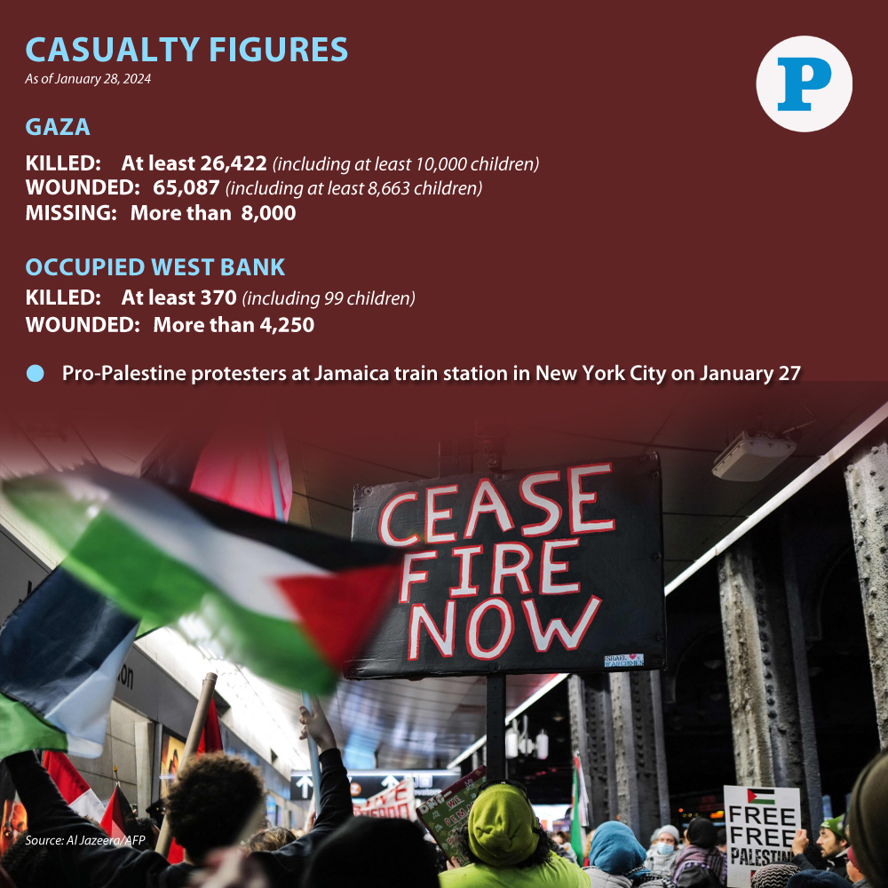 [10 pm Doha Time] The death toll in the Gaza Strip rises two days after the International Court of Justice ordered Israel to prevent destruction and any acts of genocide in Gaza but failed to order ceasefire.
