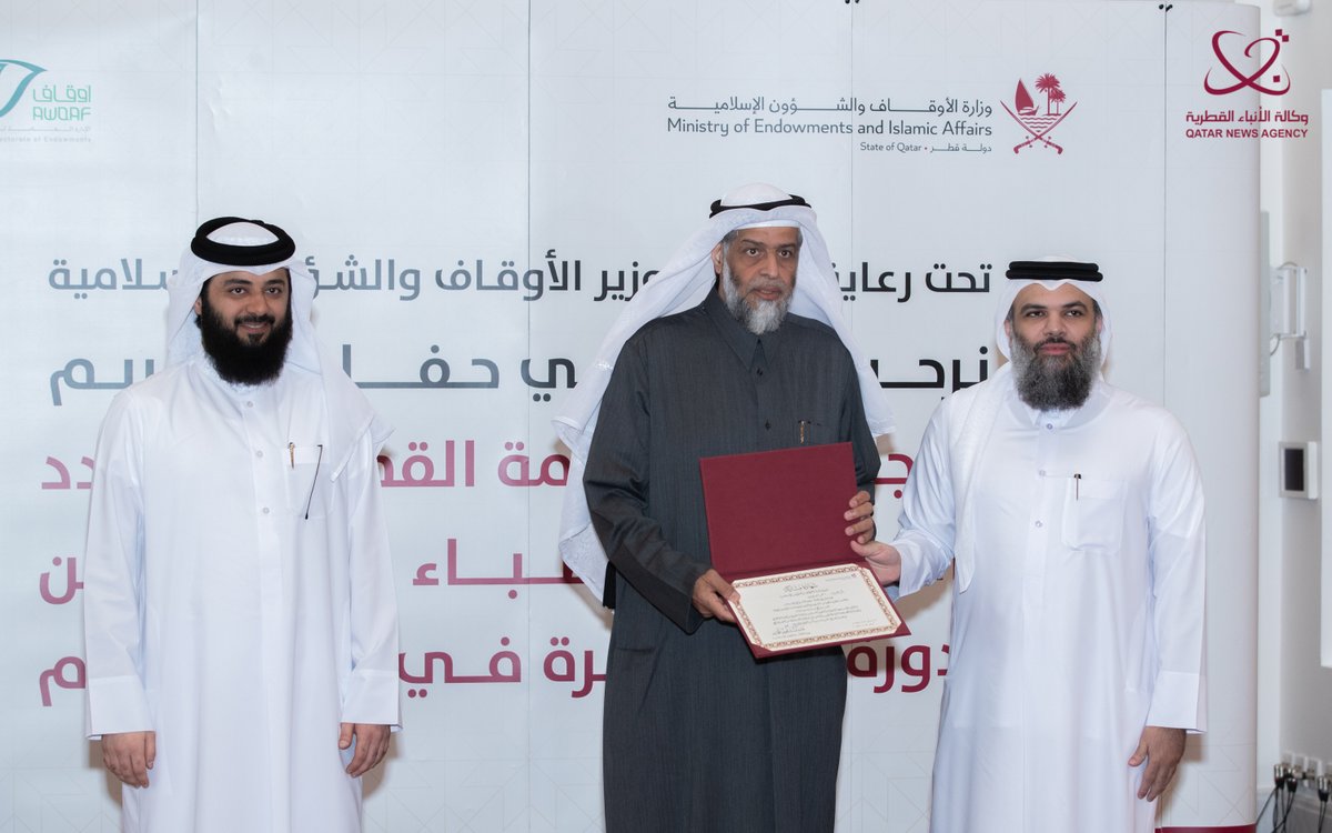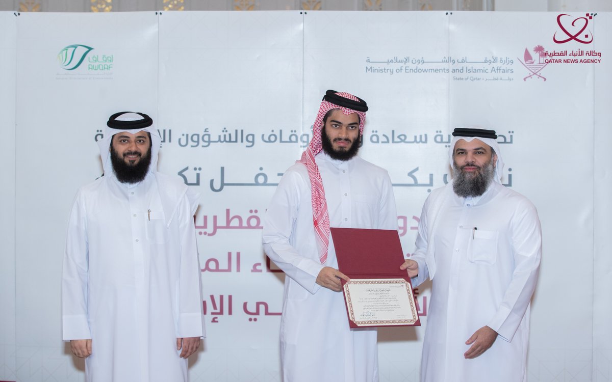 The ceremony was attended by Undersecretary of the Ministry of Endowments and Islamic Affairs (Awqaf) HE Dr. Sheikh Khalid bin Mohammed bin Ghanem Al-Thani, Assistant Undersecretary for Da'wah and Mosques Affairs, Mohammed bin Hamad Al Kuwari, and Assistant Undersecretary for Islamic Affairs, Khalid bin Shaheen Al Ghanem.