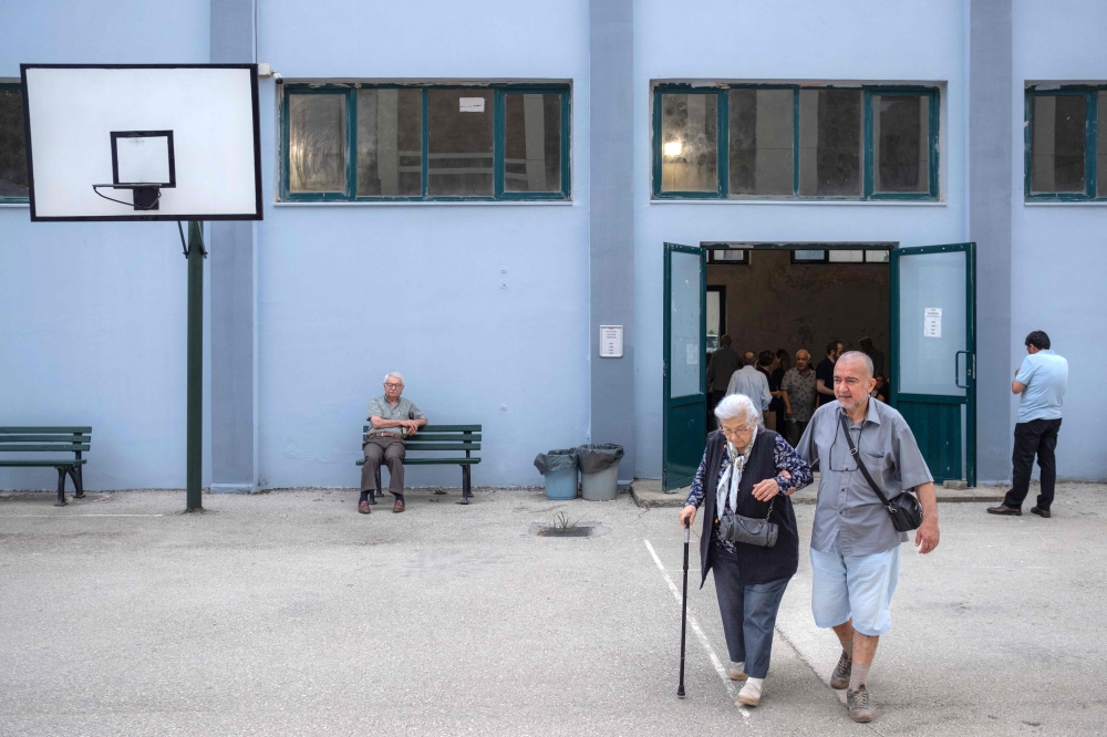 Voters leave a polling station in a government school on the day of the Presidential runoff vote in Adana. Photo by Can EROK / AFP