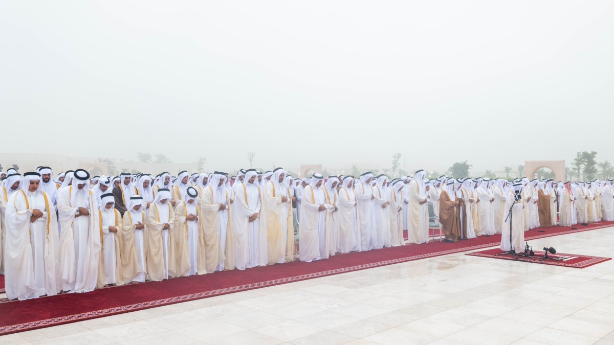 Also performing the prayer were HH Sheikh Mohammed bin Khalifa Al-Thani, HE Prime Minister and Minister of Interior Sheikh Mohammed bin Abdulrahman bin Jassim Al-Thani, HE Speaker of the Shura Council Hassan bin Abdullah Al Ghanem, and a number of Their Excellencies sheikhs, ministers, members of the Shura Council, and a number of Their Excellencies ambassadors and heads of diplomatic missions in the country.