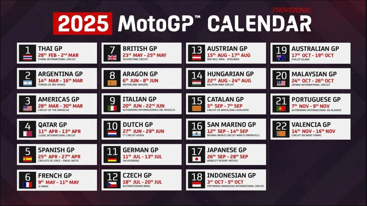 It will be the fourth leg on the World Championship 2025 provisional calandar which features 22 Grands Prix across 18 countries. In the past two decades, Qatar has usually hosted the MotoGP season-opener at LIC.