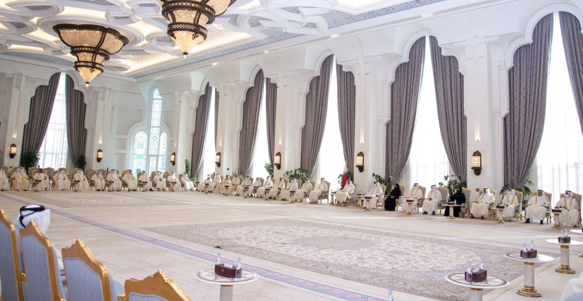 Doha: The Amir HH Sheikh Tamim bin Hamad Al Thani received at the Amiri Diwan this morning, their Excellencies the Speaker and members of the Shura Council.