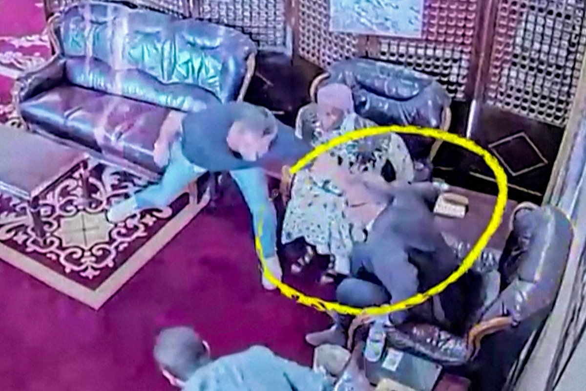 This grab taken from footage released by Al-Masirah TV station of Yemen's Huthis on December 28, 2024 shows CCTV images of the head of the World Health Organisation (WHO), Tedros Adhanom, being escorted to safety at Sanaa airport as it was hit by an Israeli strike. (Photo by AFP)