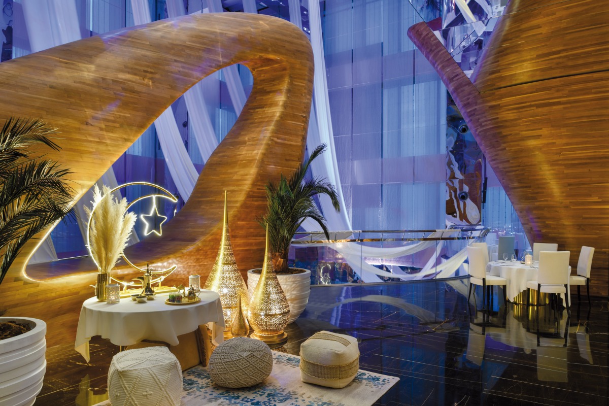 The five-star Banyan Tree Hotel has recently unveiled its Sahara Tent on the 28th floor, where patrons can enjoy delicious dishes and live music performances. The hotel provides its guests with a sumptuous buffet for breakfast and suhoor. It also serves a selection of traditional drinks and desserts. The tent features private spaces for families and friends in order to dine in absolute privacy. Guests can also enjoy a varied Iftar and suhoor buffet and a wide range of appetizers, soups and international, Turkish and Arabic main dishes. As well as a wide variety of desserts specially prepared by the chefs. It should be noted that the variety of food will change continuously to meet all tastes, at a price of QR230 per person for Iftar and QR250 for suhoor. The hotel is located in Msheireb, the heart of Doha, within the Doha Oasis property, one of the most exciting destinations in the vibrant city of Doha. Working hours of the Ramadan tent are from 5:30 pm to 8:00 pm for Iftar and 8:30pm to 2:00am for Sohoor.