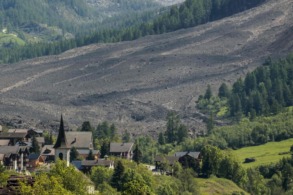 A huge landslide next to the village of Wiler, on May 29, 2025.
