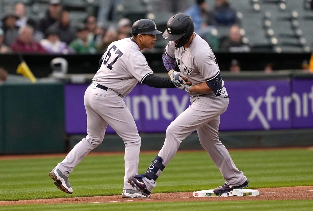 He got Aledmys Díaz to ground out before Shea Langeliers flied out to short center field. When Esteury Ruiz grounded out to third baseman Josh Donaldson to end it, New York's dugout and bullpen emptied as Germán’s teammates raced out to the mound to celebrate.