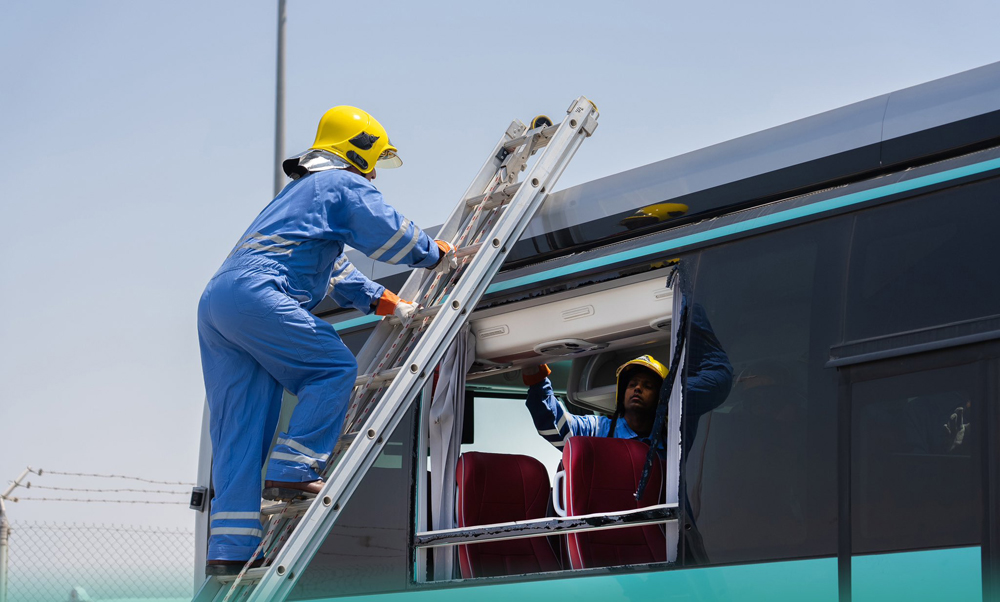 The event was attended by a diverse group of Mowasalat staff together with representatives from the General Directorate of Civil Defence. During the four-day exercise, the attendees were trained for the management of a variety of disaster situations, from full-scale electric vehicle crash damage to multiple ignition scenarios associated with electric vehicles. The training prop bus to facilitate the practical training was supplied by Yutong Buses for performing emergency operation techniques in a controlled set-up.