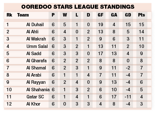 Doha, Qatar: The Ooredoo Stars League (OSL) took a nearly three-week break, but not without heating up the battle for the top spot. Friday’s round saw bottom-placed Al Shahania end Al Duhail’s perfect run, while Al Ahli closed the gap to just one point after a victory over Al Shamal.