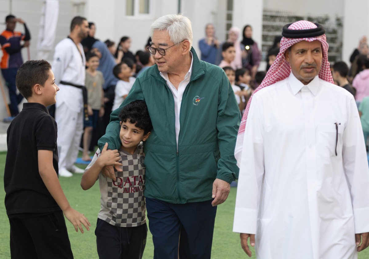 Doha, Qatar: President of World Taekwondo and Chair of the Taekwondo Humanitarian Foundation (THF), Dr. Chungwon Choue, visited the Guests of Qatar from Palestine compound in Doha, within the framework of strengthening collaboration between the THF and key national stakeholders involved in sport and social development initiatives at the compound.