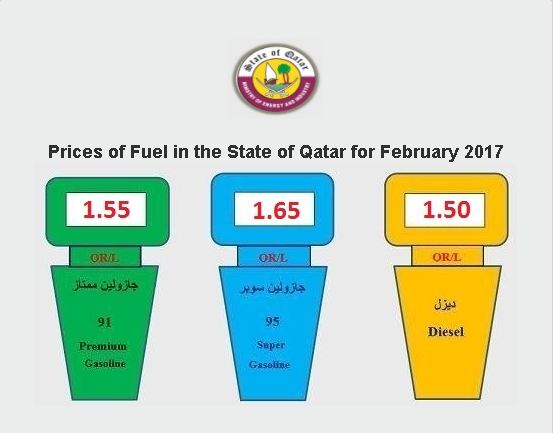 Super grade petrol will cost QR1.65, 10 dirhams more than January price, while premium grade petrol price has gone up by 5 dirhams to QR1.55.