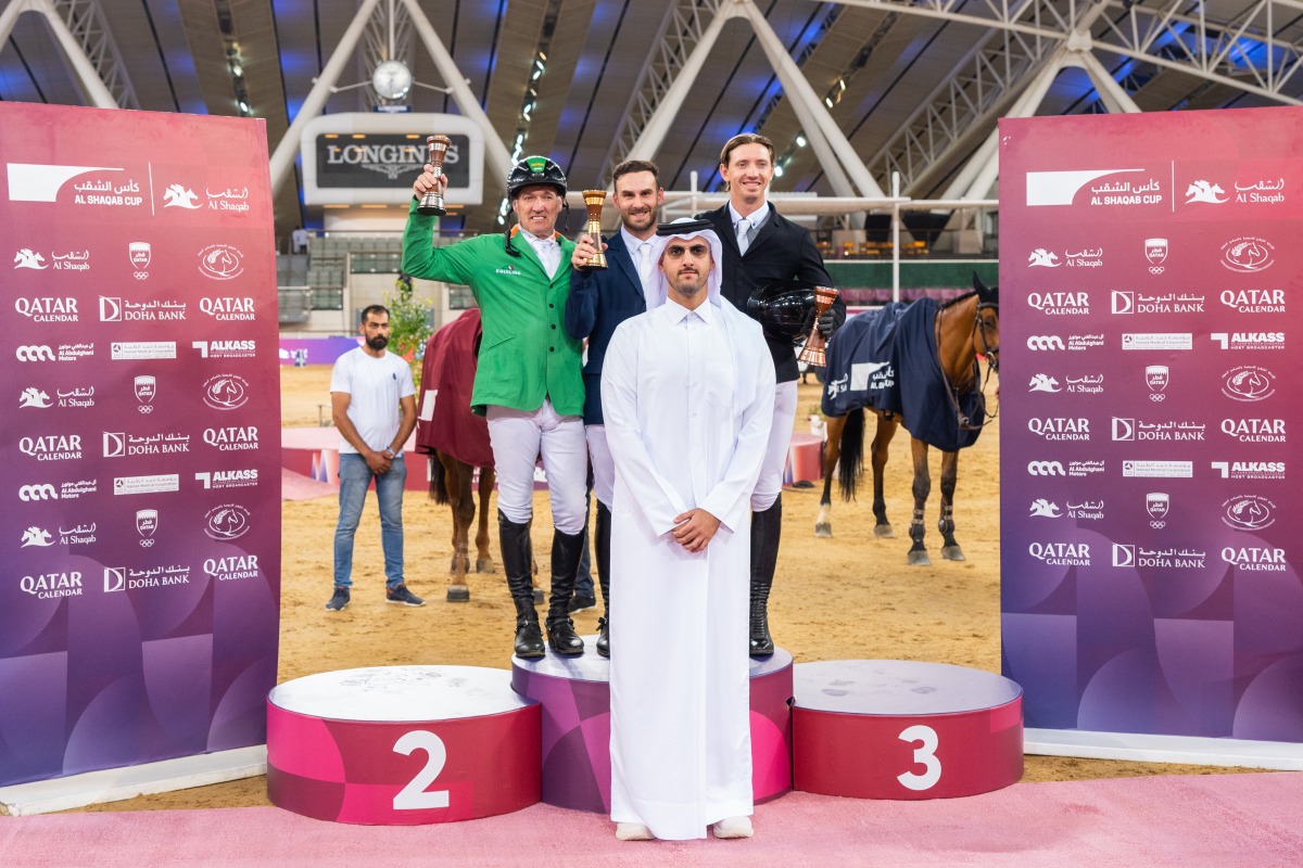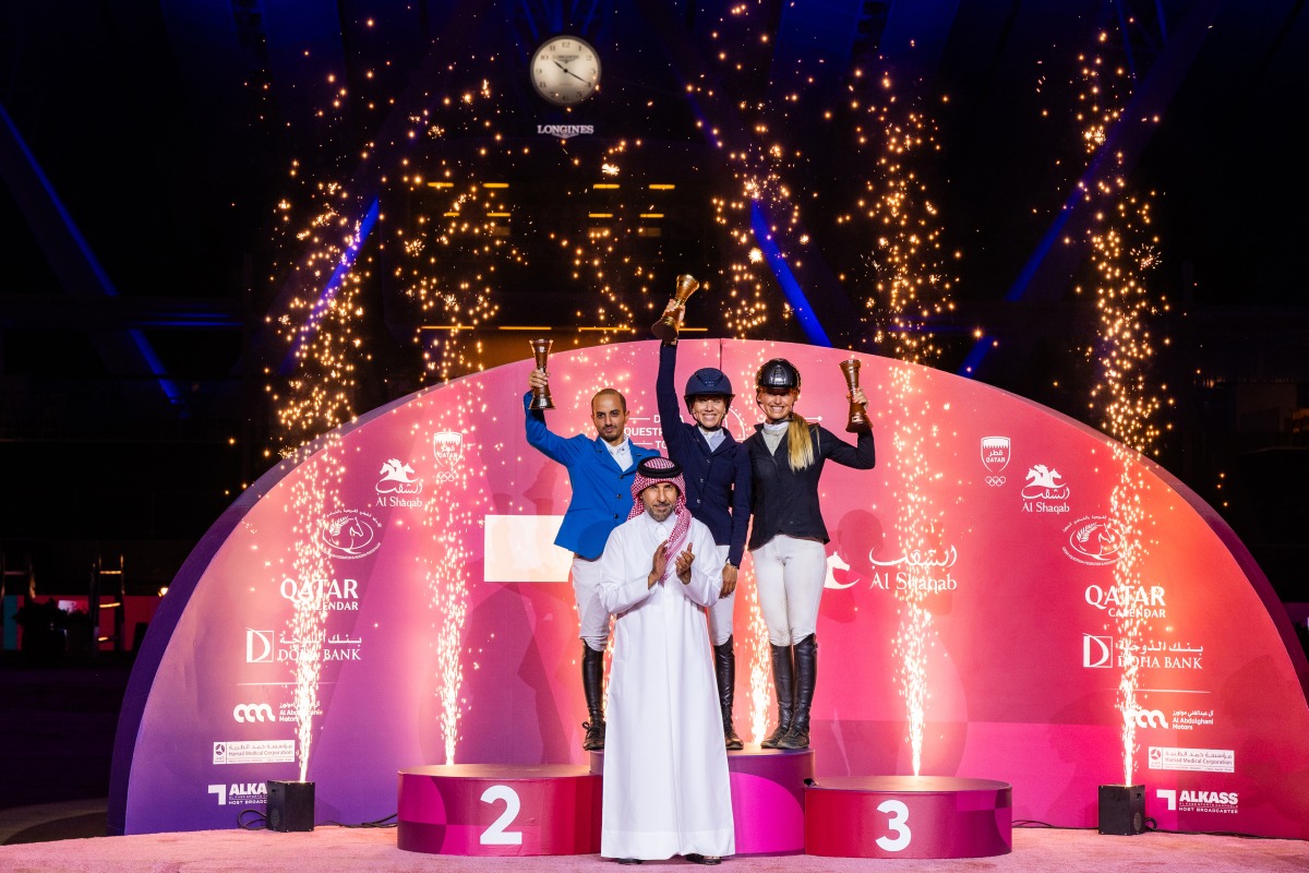 Qatar Olympic Committee Second Vice President and a member of the Al Shaqab Board of Directors Dr. Thani bin Abdulrahman Al Kuwari crowned the podium winners of the CSI5* 1.60m Grand Prix event.