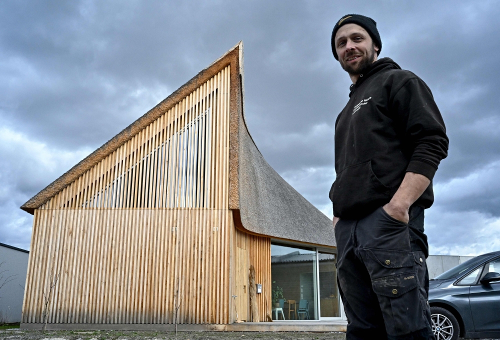 Jacobus van Hoorne, a 37-year-old former physicist at Cern and now reed farmer, poses in front of his house for which he built the reed roof at Weiden am See, Austria on March 9, 2023. Photo by JOE KLAMAR / AFP
