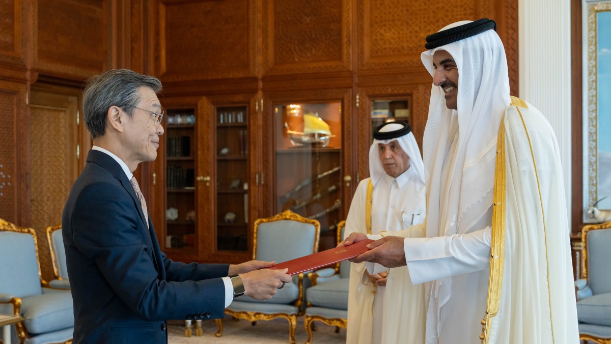 Doha, Qatar: The Amir HH Sheikh Tamim bin Hamad Al Thani received, in his office at the Amiri Diwan this morning, the credentials of six new ambassadors to the country.