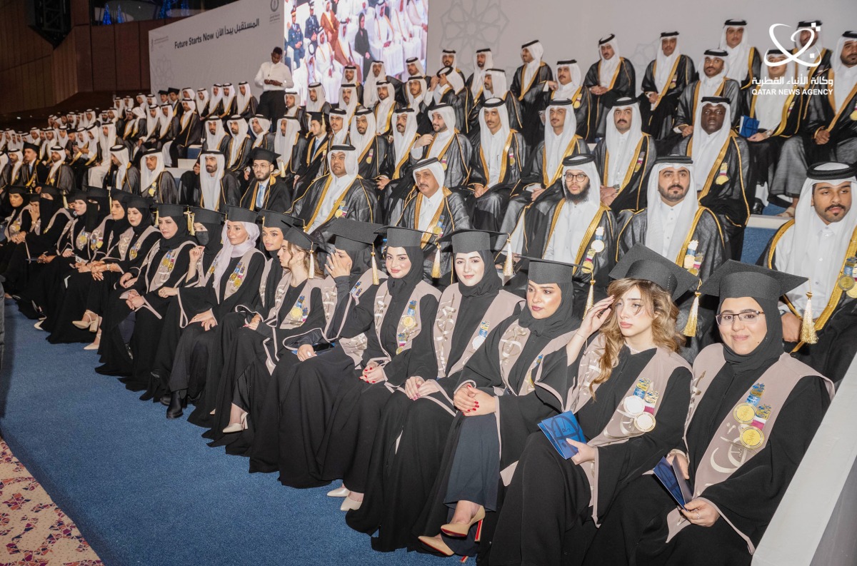 On behalf of the graduates, students Khalid Maqdad and Noora Al Emadi delivered speeches sharing their university experiences, the challenges they faced, and how they turned them into opportunities.