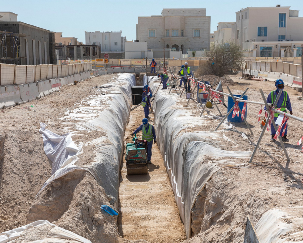 In this context, Eng. Abdullah Ali Al Nuaimi, Acting Head of Northern Areas Section at the Roads Projects Department at Ashghal, confirmed that the project is being implemented as part of a development plan for the Northern areas of the country, as it meets the urban growth in the region and covers Umm Slal Ali area and Umm Ebairiya village, allowing citizens to build their homes. He explained that the project connects the area with the internal and main roads network, and includes development and improvement works on Umm Slal Ali Road and Al Wudayhiya Street, which are two main streets in the area that serve many commercial establishments.
