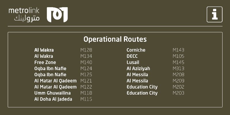 Doha Metro announced that Metrolink will operate from 6am to 11pm on Sunday to Wednesday, 6 am to 11:59 pm on Thursday and 2 pm to 11:50 pm on Friday.