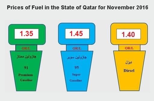 Price of Super grade petrol will be QR1.45 a litre. It was QR1.35 in October and QR1.30 in September.
