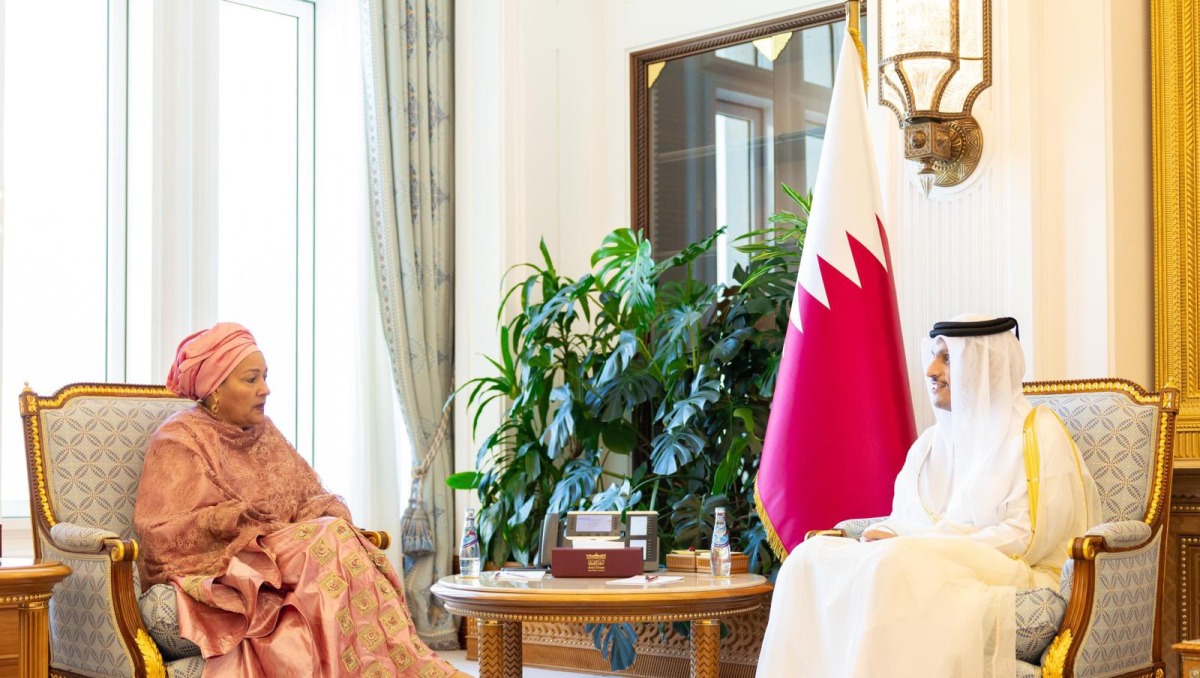 Doha, Qatar: Prime Minister and Minister of Foreign Affairs, His Excellency Sheikh Mohammed bin Abdulrahman bin Jassim Al Thani, received at the Amiri Diwan today Her Excellency Amina Mohammed, Deputy Secretary-General of the United Nations, who is currently visiting the country.