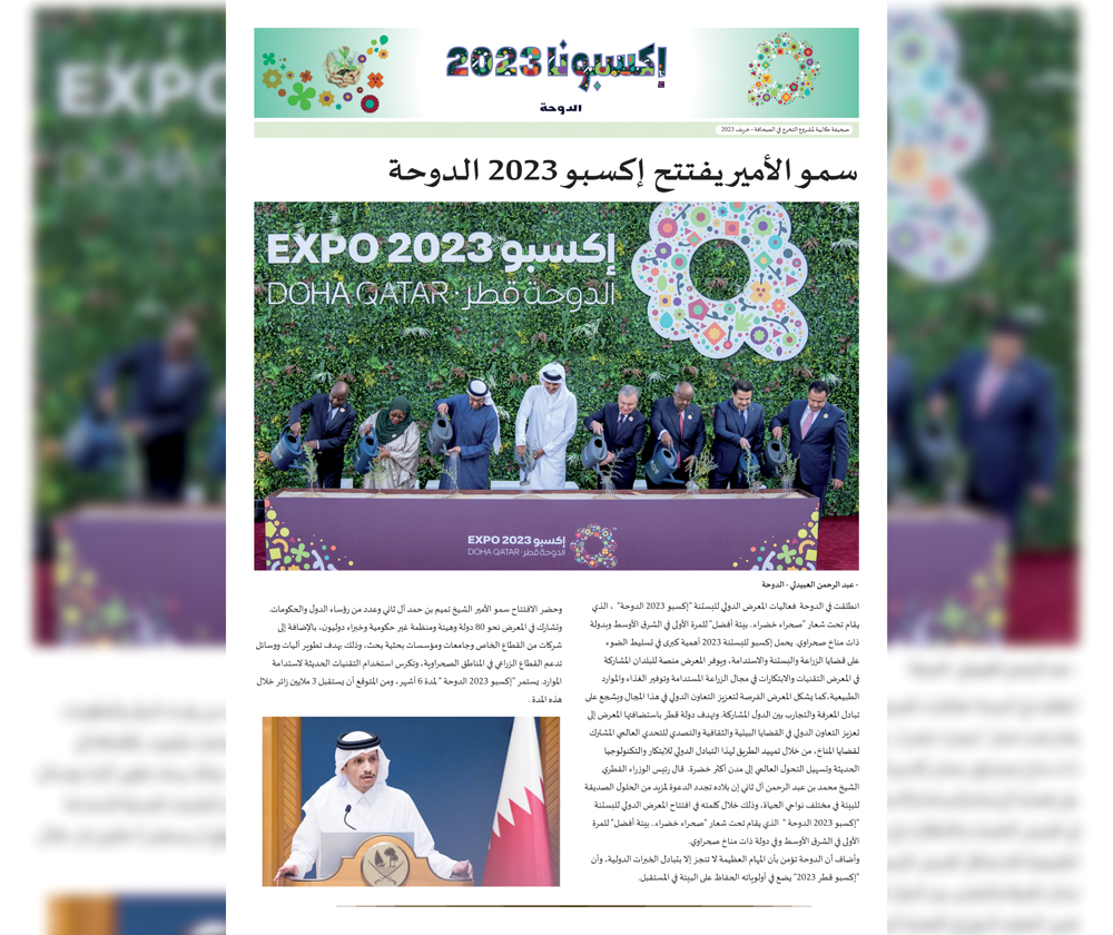 She said the project also helps strengthening the country’s efforts for Expo 2023. “Dr. Khalid Al-Shafi provided academic and professional guidance, which was transformed into a professional work consisting of a news website and a printed newspaper to provide purposeful and integrated press coverage characterised by professionalism and creativity,” said Dr. Eissa.