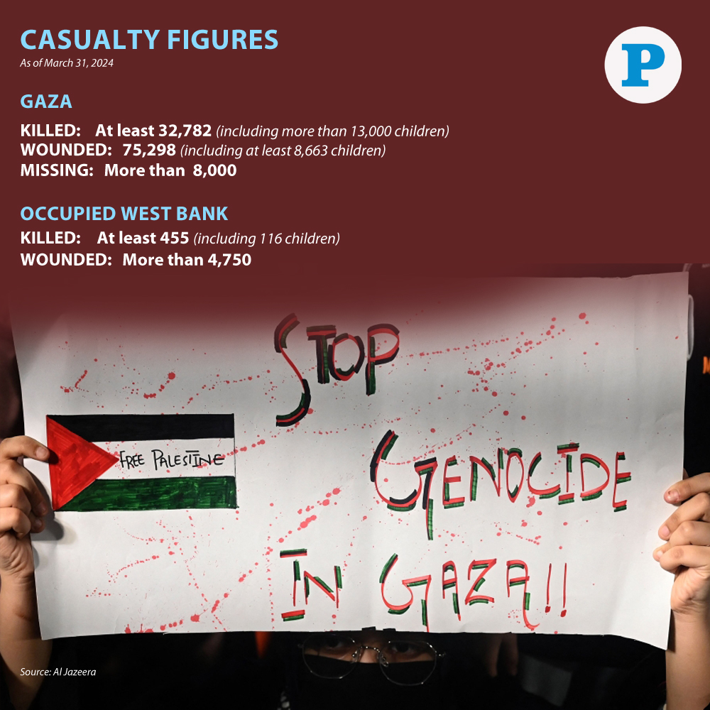Gaza: The number of casualties due to the persistent Israeli aggression on Gaza has risen to 32,782 martyrs and 75,298 wounded since October, the Ministry of Health in Gaza reported in a statement on Sunday.