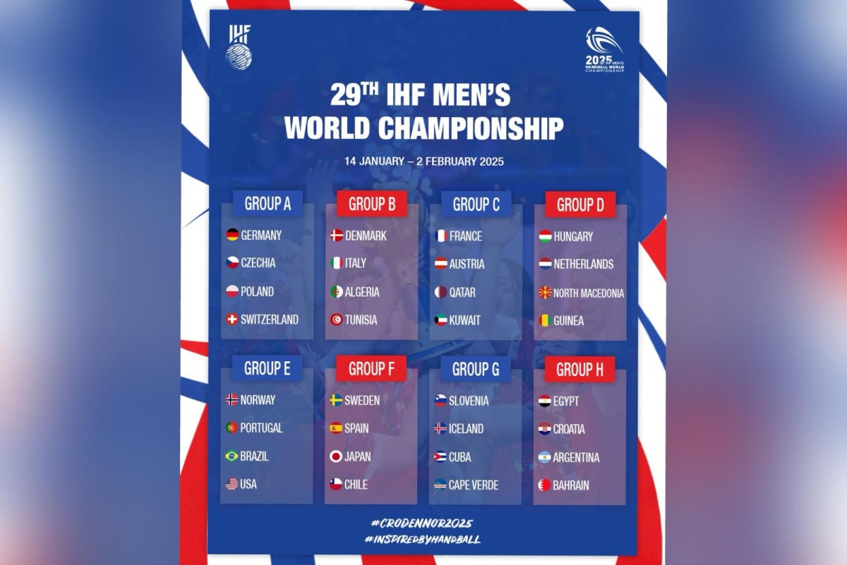 Doha, Qatar: Qatar handball team have been placed in tough Group C of the 2025 IHF Men’s World Championship facing reigning Olympic champions France, Austria and Kuwait in the first stage.