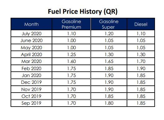 In April 2016, the Ministry of Energy and Industry had started pegging the fuel prices to the international market and from September 2017, it is Qatar Petroleum who is announcing the monthly price list.