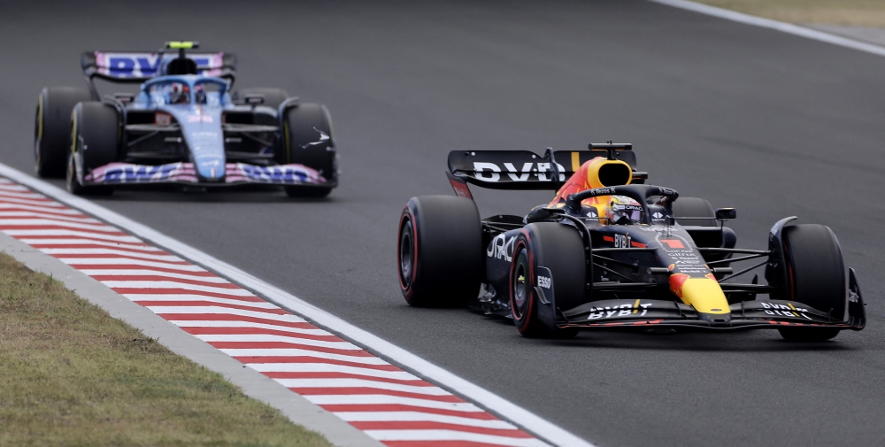 Red Bull's Max Verstappen celebrates on the podium with a trophy after winning the Hungarian Grand Prix in Hungaroring, Budapest, Hungary, July 31, 2022. (REUTERS/Bernadett Szabo)