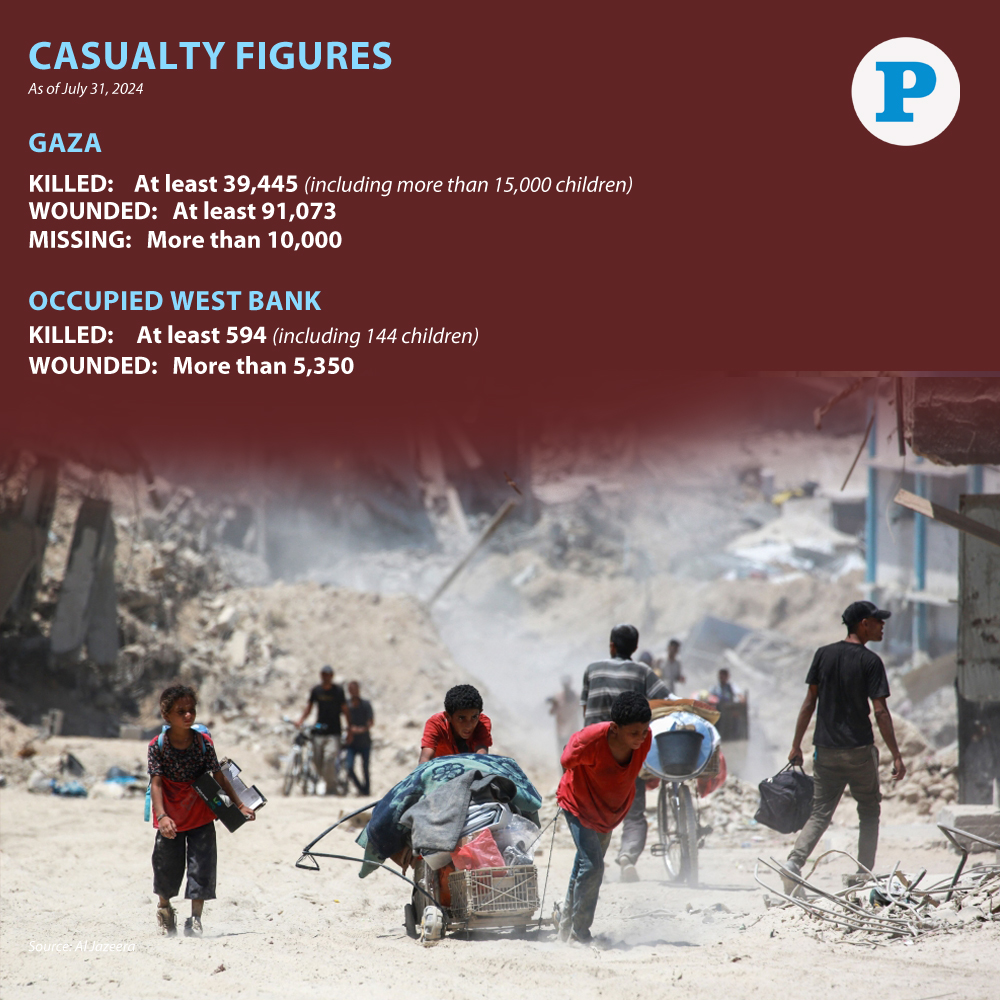 Gaza: The Israeli occupation forces (IOF) murdered more than 39,445 Palestinian civilians and injured more than 91,073 others (mostly children), since the beginning of the Israeli occupation's genocide against Gaza in October 2023.
