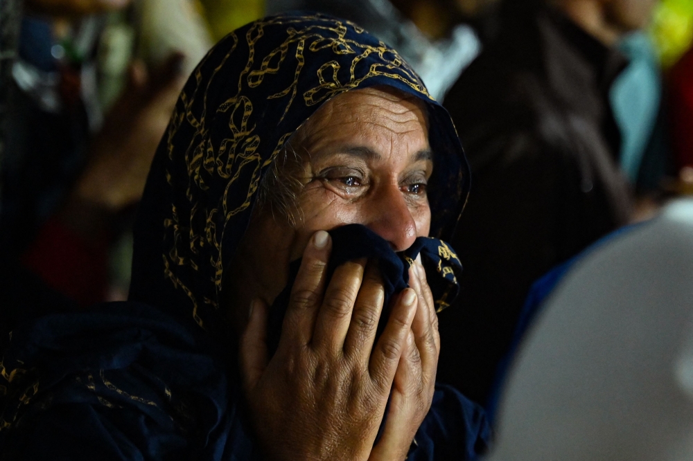 A woman cries as she waits at a primary health center in Meppadi in Kerala's Wayanad district in India on July 30, 2024. (Photo by Idrees Mohammed / AFP)