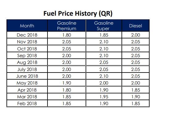 Meanwhile, super will now be available for QR 1.55 in January, which is also 30 dirhams less than December rate.