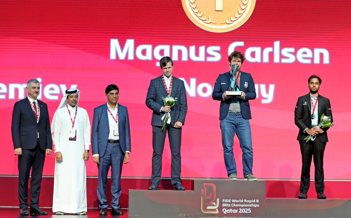 Doha, Qatar: Norway’s Magnus Carlsen completed a dominant double at the FIDE World Rapid and Blitz Championships Qatar 2025, adding the Blitz world title to his rapid crown at the Qatar University Sports and Events Complex yesterday.