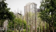 In the center of New York City's spring greenery, artist Maya Lin has installed the barren, brown trunks of 49 dead Atlantic White...